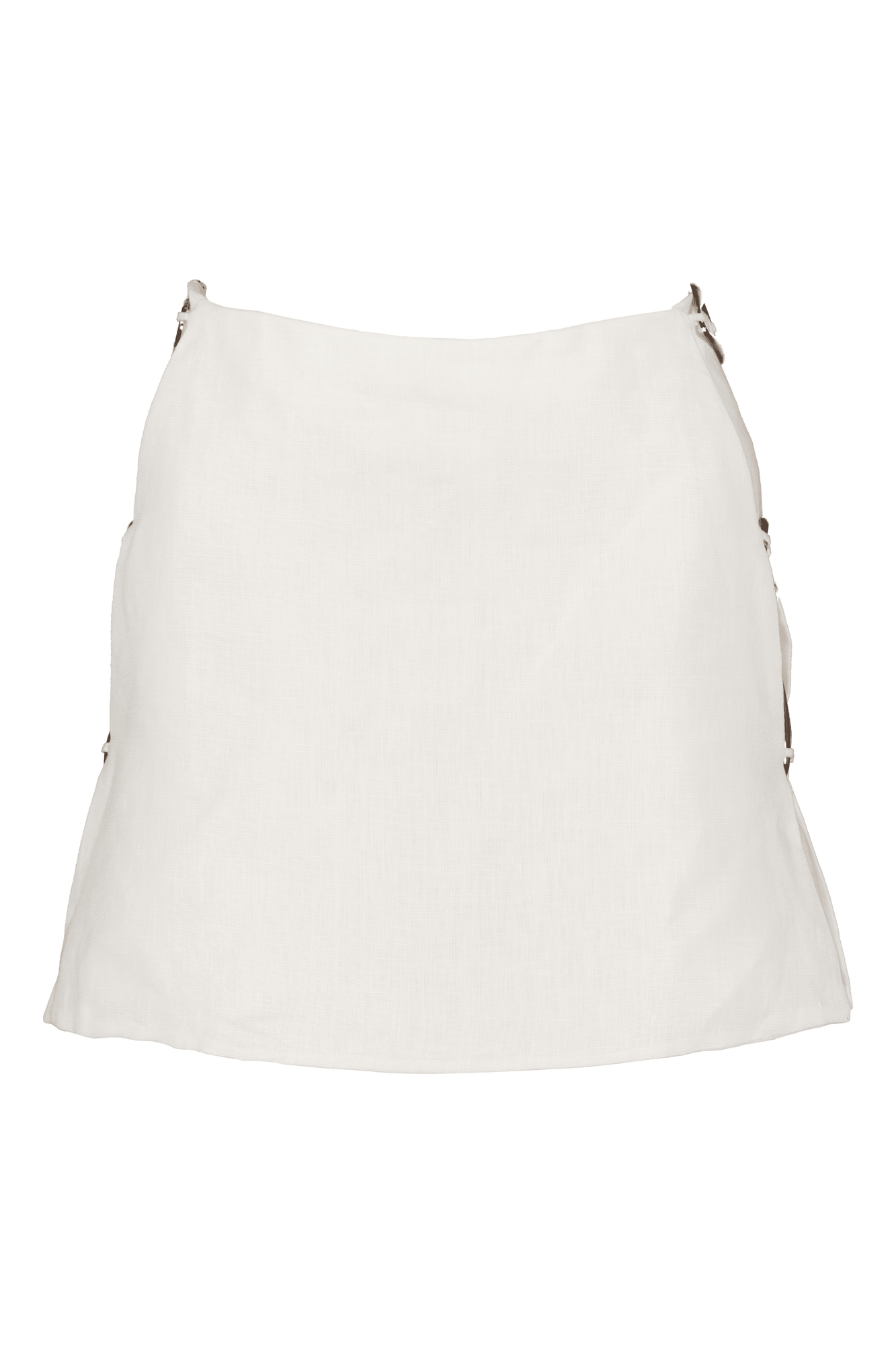 Falda corta con detalles dorados en los laterales.